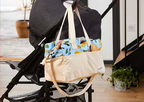 La bolsa de paseo Little Moments, en tres bonitos estampados ¿Quieres una bolsa de paseo igual de práctica pero con estampados originales? La bolsa de paseo Little Moments funciona como cesta para regalar a un recién nacido, pues incluye cinco productos esenciales de cuidado del bebé y también es una práctica bolsa para llevar en el carrito o de viaje. Disponible en tres modernos estampados, la bolsa de paseo incluye el gel de baño suave, leche hidratante corporal, crema bálsamo 1-2-3, agua de colonia y toallitas limpiadoras.